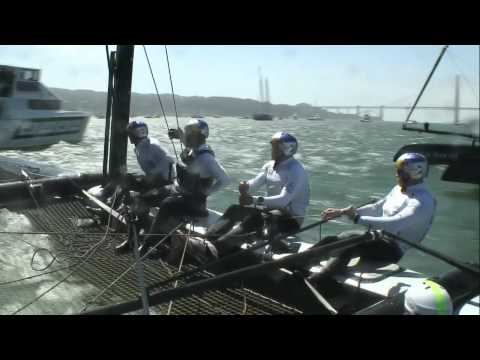 AMAZING VIDEO HITTING YOU TUBE TODAY. ORACLE TEAM USA COUTTS (Russell Coutts) crashed out of the America's Cup World Series races in spectacular fashion on Friday, hitting the Race Committee boat at speed during the start of fleet race number three.